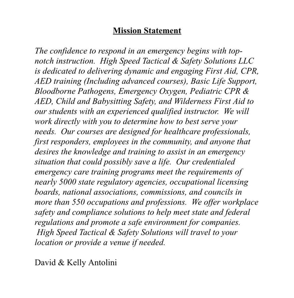 We are offering classes in CPR/AED, Basic First Aid, Advanced First Aid, Basic Life Support, Emergency Oxygen, Pediatric CPR/AED/First Aid, Wilderness First Aid and Bloodbourne Pathogens and Active Violence Emergency Response Training.